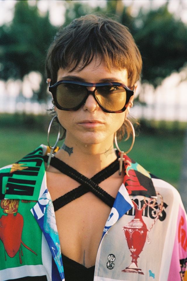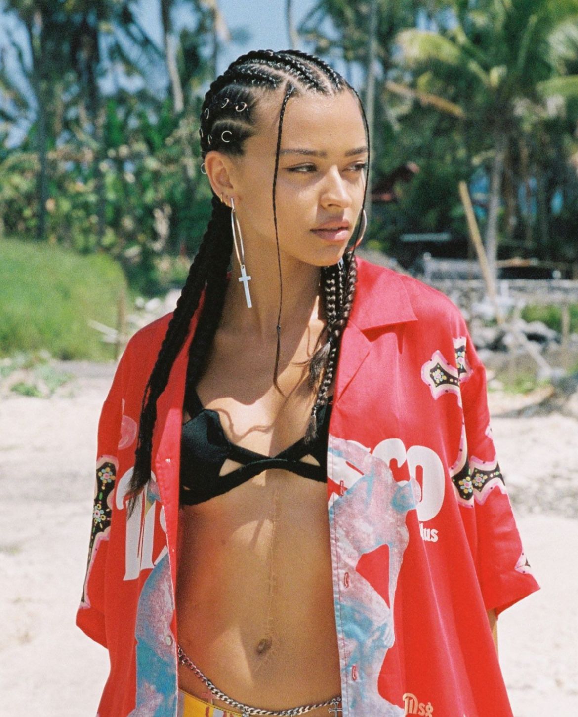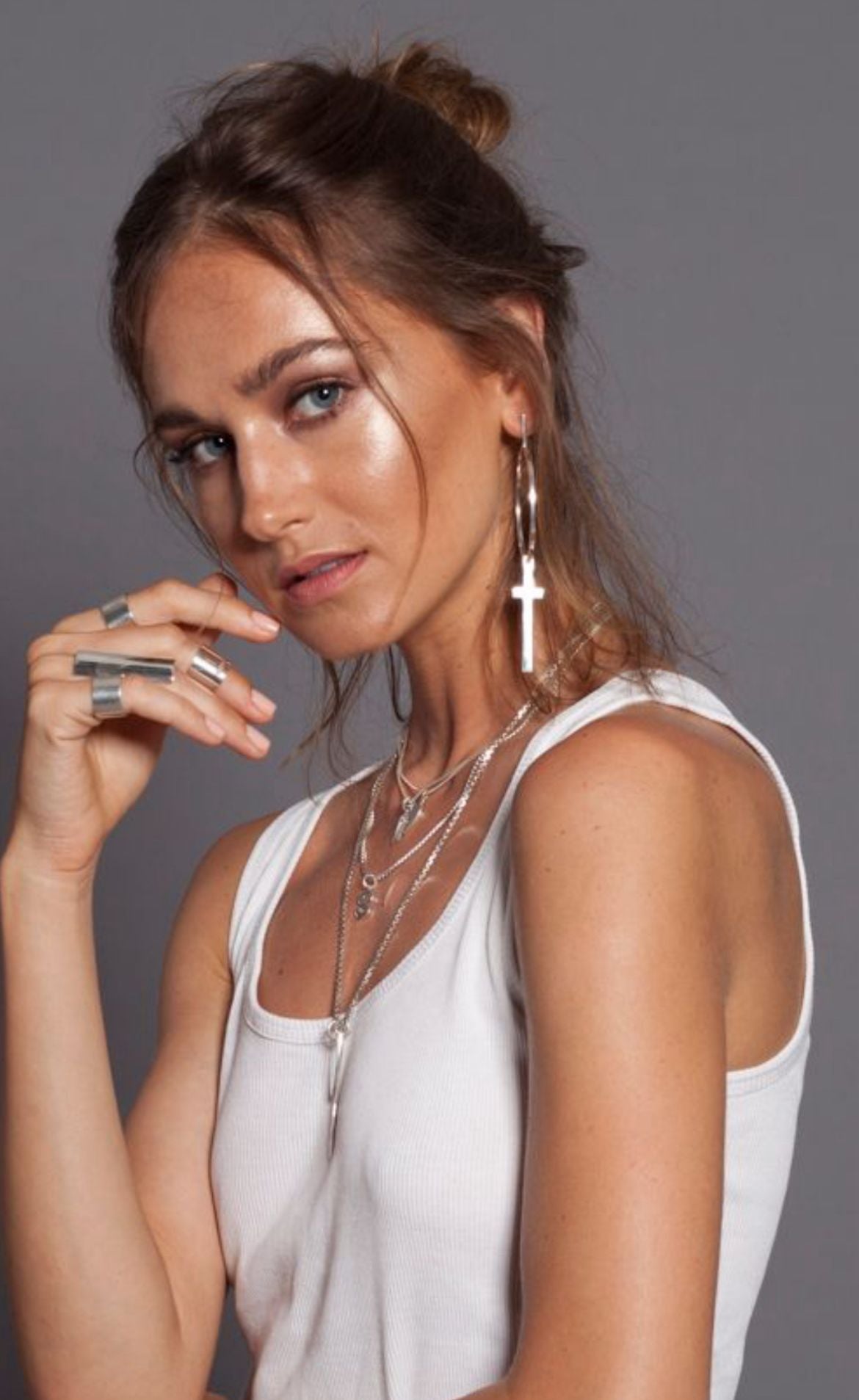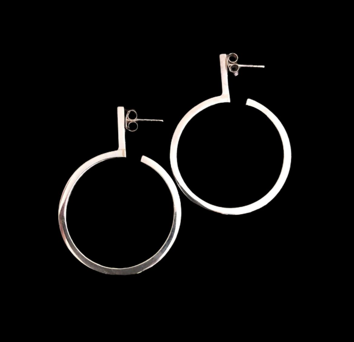 Not delicate, not discreet—this cross drops long and jagged, a symbol reimagined with edge. Hung from the NRJ signature large hoop, it cuts sharp lines while carrying raw weight. Wear it solo as a statement, or clash it with other hoops for chaotic shine.